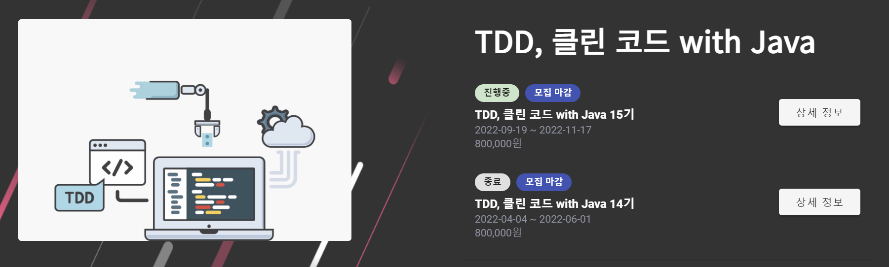 박재성(자바지기)님이 대표로 계신 NEXT STEP의 'TDD, 클린 코드 with Java' 수강 과정에 참여하게 됐다.